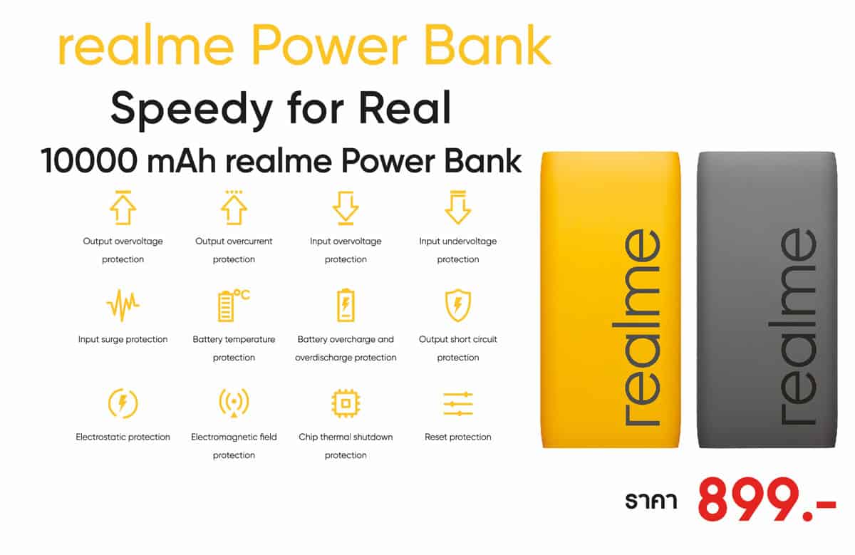 นอกจากสมาร์ทโฟนที่ realme ยกขบวนมาจัดโปรโมชั่นอย่างสุดคุ้มแล้ว ยังมีผลิตภัณฑ์ที่น่าสนใจอย่างอีกมากมาย อย่างหูฟังไร้สายรุ่นล่าสุด realme Buds Air ตัวจริงการเชื่อมต่อแบบไร้สาย ตอบโจทย์สำหรับใครที่กำลังมองหาหูฟังไร้สายที่อัดแน่นไปด้วยคุณภาพห้ามพลาดในราคาเพียง 1,999 บาท และ realme Power Bank Speedy for Real มาพร้อมความจุ 10000 mAh ในราคาเพียง 899 บาท