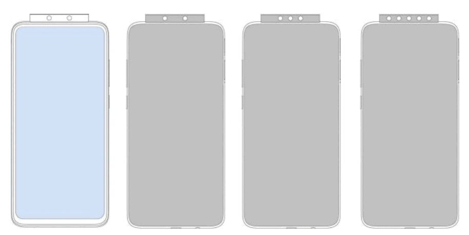ภาพจากสิทธิบัตรชุดนี้ จะมีด้วยกันทั้งหมด 4 ภาพ โดยที่ 3 ภาพแรกจะเป็นด้านหลังของโทรศัพท์ ส่วนภาพสุดท้ายจะเป็นด้านหน้า เราจะเห็นว่า ภาพด้านหลังเครื่องนั้น ตรงชุดโมดูลกล้องที่เป็นแบบ Pop Up ขึ้นมานั้น มีแสดงให้เห็นจำนวนของกล้อง 5 เลนส์, 3 เลนส์ และ 2 เลนส์ ส่วนด้านหน้าจะเป็นกล้องแบบ 2 เลนส์