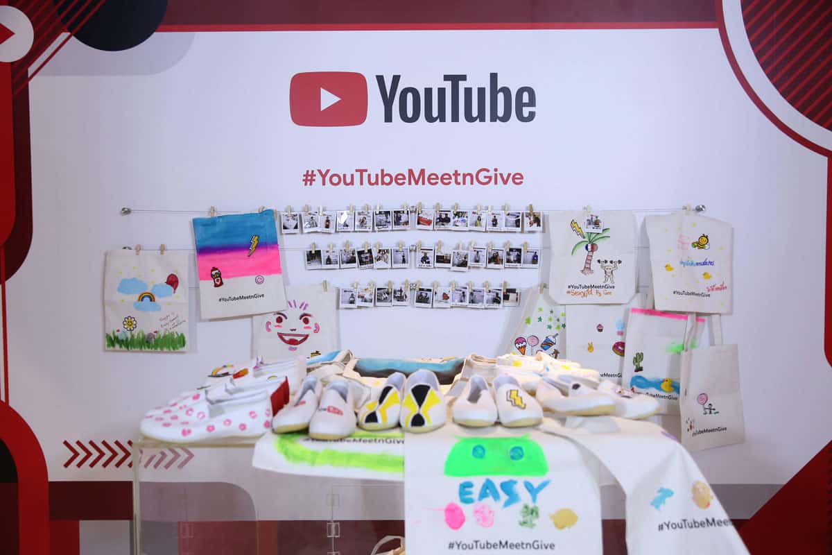 นอกจากการพบปะกันของครีเอเตอร์แล้วนั้น YouTube ประเทศไทย และครีเอเตอร์ ยังได้ร่วมกันนำของมาร่วมบริจาค และสร้างสรรค์ของขวัญสุดพิเศษ กับการเพ้นท์กระเป๋าผ้าและรองเท้า เพื่อร่วมส่งต่อบริจาคให้กับมูลนิธิบ้านนกขมิ้น