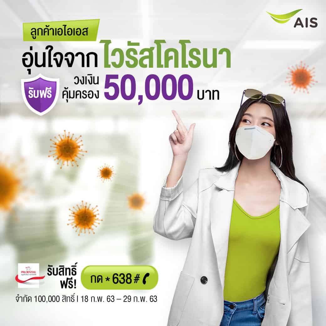 เอไอเอส พร้อมดูแลลูกค้าให้อุ่นใจยิ่งกว่าเดิม ร่วมกับ พรูเด็นเชียล ประกันชีวิต มอบกรมธรรม์ประกันชีวิต ไวรัสโคโรนา Covid-19 ให้แก่ลูกค้าเอไอเอส ฟรี! ครั้งแรกของไทย