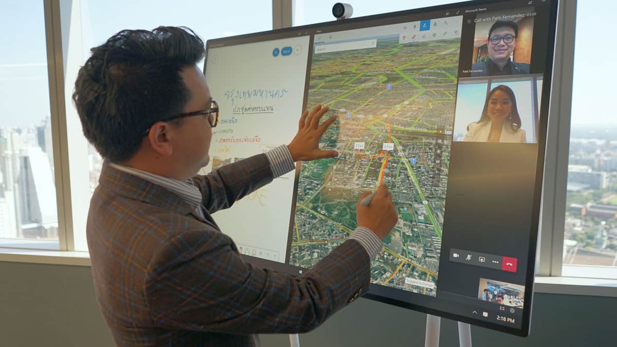 นอกจากนี้ แอปพลิเคชัน Microsoft Whiteboard ยังช่วยให้ทุกคนทำงานร่วมกันได้บนกระดานดิจิทัลที่อ่าน วาด และเขียนได้จากหลายหน้าจอพร้อมกัน เพื่อให้ง่ายต่อการจัดระเบียบเมื่อเสร็จสิ้น และให้ทีมทำงานอย่างต่อเนื่องโดยไม่สะดุด ฟีเจอร์ AI ที่มาพร้อมตัวอุปกรณ์ยังช่วยให้ผู้ใช้สามารถแสดงความคิดออกมาในชิ้นงานได้ในเวลาอันน้อยนิด ด้วยการรองรับหมึกดิจิทัลเพื่อการวาดเขียนบนกระดานเสมือนจริงบนคลาวด์ จึงทำให้การรวมทีมหาไอเดียกลายเป็นเรื่องง่ายในทุกโอกาส