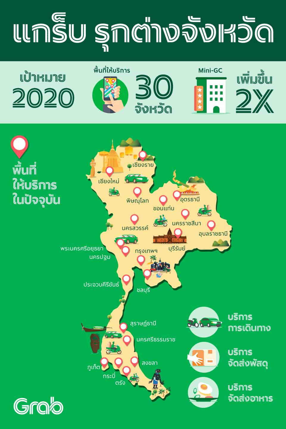 โดยปัจจุบันพื้นที่ให้บริการของแกร็บครอบคลุม 20 จังหวัดทั่วประเทศ และเรายังคงเดินหน้าขยายธุรกิจอย่างต่อเนื่องเพื่อตอบสนองความต้องการของคนไทย”