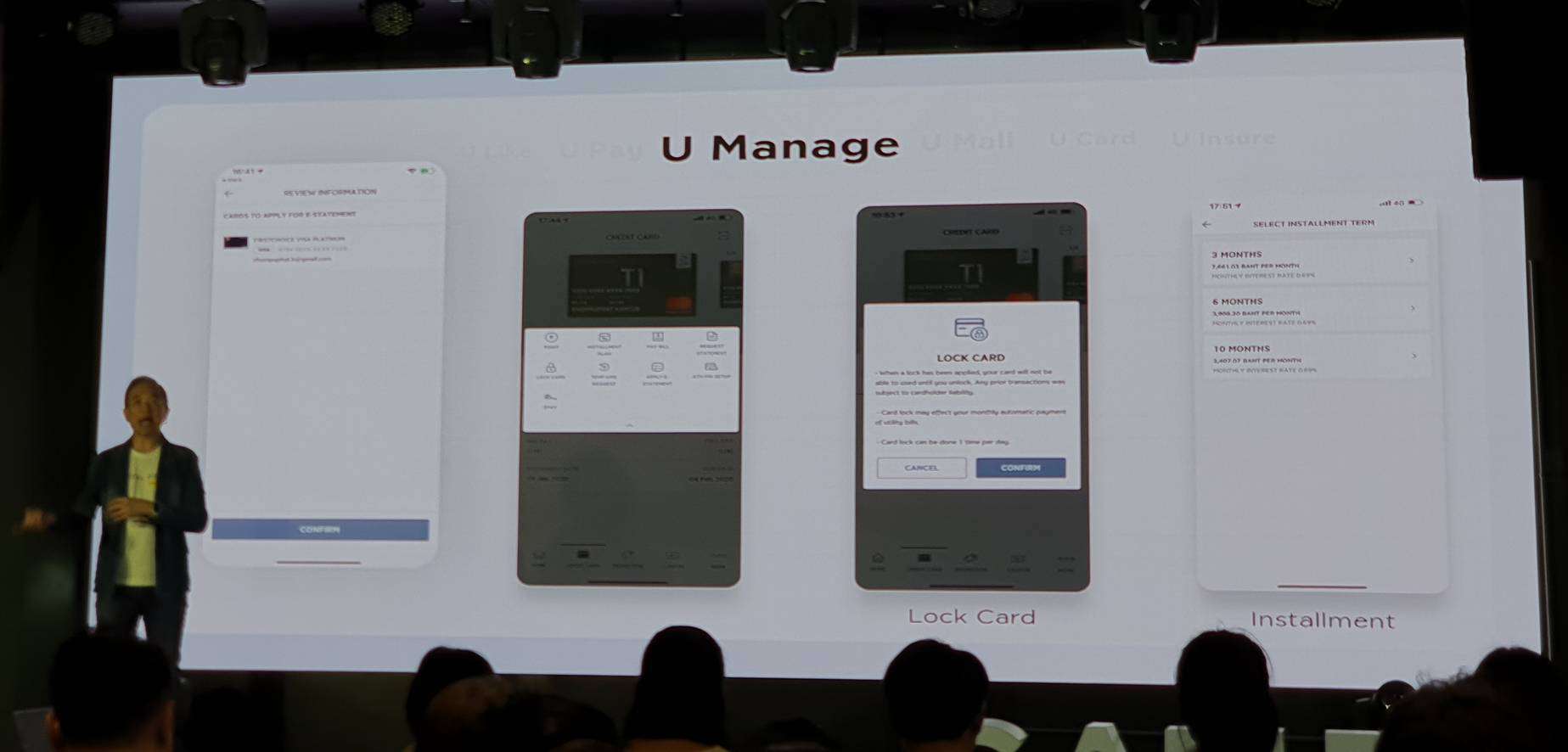 - U Manage บริหารบัตรเครดิตได้ง่าย ๆ ด้วยปลายนิ้ว ไม่ว่าจะเป็น บริการเพิ่มวงเงินชั่วคราว, แบ่งชำระรายเดือน, ระงับบัตรชั่วคราว, เปิดใช้บัตรเครดิต, ตั้งรหัสกดเงินสด, สมัครรับใบแจ้งยอดอิเล็กทรอนิกส์ และบริการอื่น ๆ ให้สมาชิกบัตรเครดิตในเครือกรุงศรี คอนซูมเมอร์บัตรฯ สามารถจัดการบัญชีบัตรได้ด้วยตนเองตลอด 24 ชม. ทุกที่ ทุกเวลา