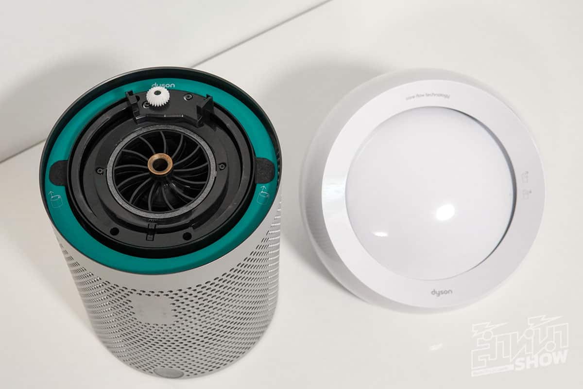 ด้านในของฐานนั้น ก็จะเป็นชุดของมอเตอร์พัดลมแบบดิจิตอล ที่ใช้เทคโนโลยีของ Dyson พัฒนารูปแบบของระบบกลศาสตร์ที่ชื่อว่า Core Flow คือตัวมอเตอร์นั้นจะติดตั้งอยู่ในแกนด้านในสุดของฐาน พัดดูดอากาศเข้ามาผ่านชั้นฟิลเตอร์กรองออกาศด้วยใบพัดความเร็วสูง