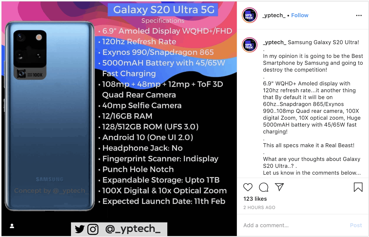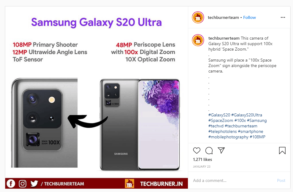 มีคำว่า “100x Space Zoom” หลุดออกมา ซึ่งมันก็หมายถึงกล้องที่สามารถซูมได้ไกลถึง 100 เท่า เรียกว่าเป็นระยะที่ซูมได้มากที่สุด และยังไม่มีสมาร์ทโฟนรุ่นไหนในปัจจุบันที่ทำได้ และคำว่า “Space Zoom” นั้น ก็หมายถึงว่านี่ซูมได้ไกลระดับทะลุจักรวาลกันไปเลย