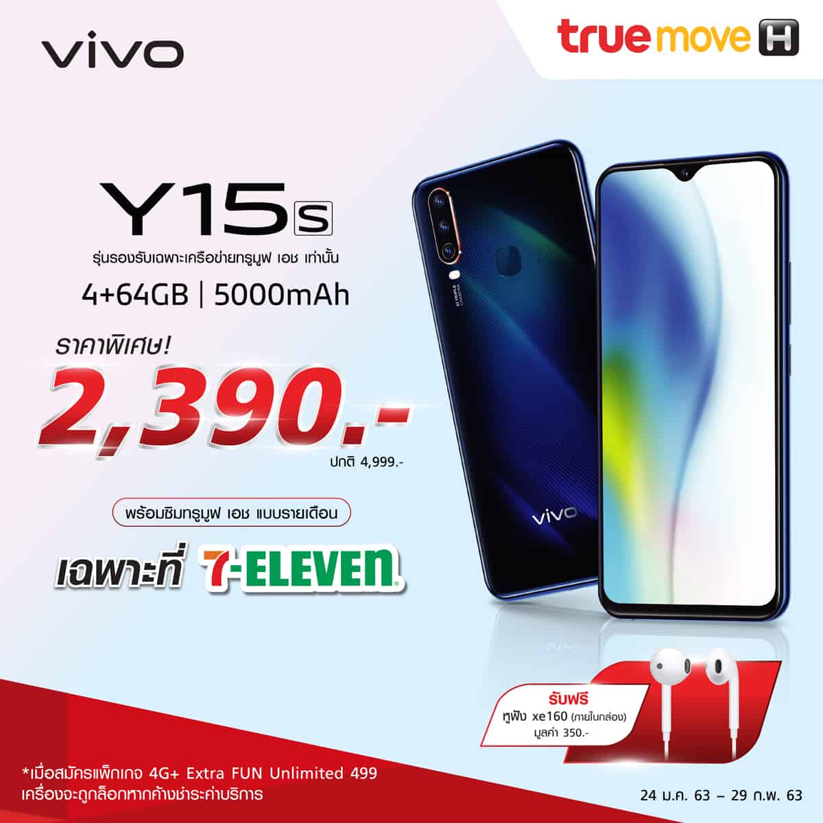 - Vivo Y15s รุ่นรองรับเฉพาะเครือข่ายทรมูฟ เอช เพียง 2,390 บาท (ปกติ 4,999 บาท)