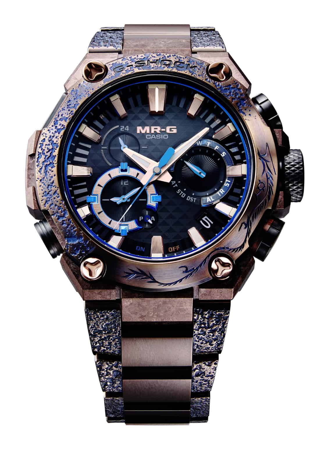นาฬิกาเรือนนี้สะท้อนให้เห็นถึงทักษะของช่างฝีมือชั้นสูง เช่นเดียวกับการแสวงหาความเป็นเลิศของนาฬิกาในซีรีส์ MR-G ที่ผ่านการรังสรรค์โดยสองศิลปินชั้นครู พื้นผิวขอบตัวเรือนนาฬิกาแต่ละชิ้นถูกแกะสลักด้วยมือเป็นรูปมังกรที่ปีนป่ายขึ้นสู่สรวงสวรรค์โดย มาซาโอะ โคบายาชิ นอกจากนี้ตัวเรือนและสายนาฬิกายังผ่านกระบวนการเคลือบไอออนไล่ชั้นสีน้ำตาล และสีน้ำเงิน ผ่านการขัดแต่งด้วยเทคนิคพิเศษโดย มาซานาโอะ คิคุชิ เพื่อสร้างรูปลักษณ์อันล้ำค่า