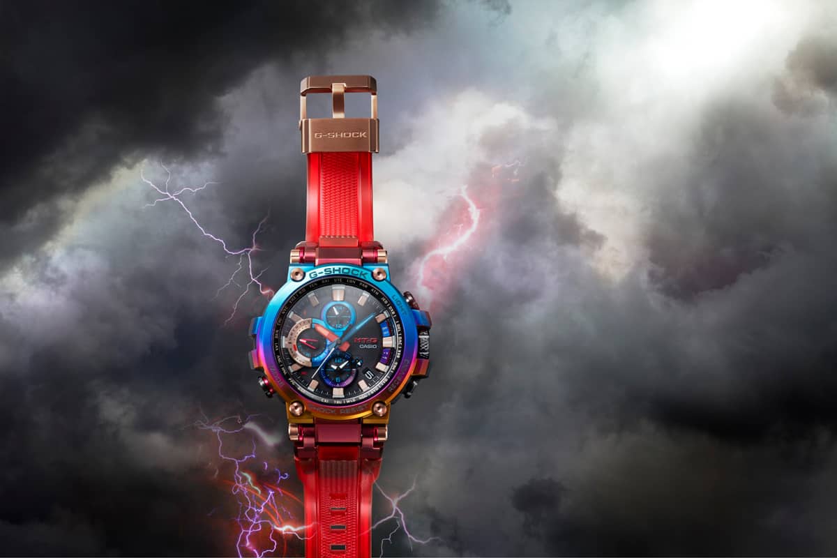ถัดมา MTG อีกหนึ่งซีรีส์ที่พลาดไม่ได้ โดดเด่นด้วยการผสานวัสดุโลหะเข้ากับเรซิน พร้อมเปิดตัวรุ่นใหม่ MTG-B1000VL กับการออกแบบที่เร้าใจด้วยความหลากหลายของสีสันที่สื่อถึงปรากฏการณ์ทางธรรมชาติจากพายุสายฟ้าขณะภูเขาไฟปะทุ
