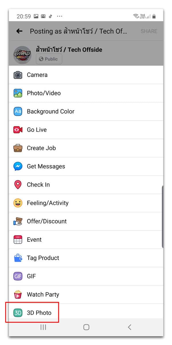- เลื่อนลงมาข้างล่างเราจะเห็นฟีเจอร์ 3D photo กดเลือกได้เลย