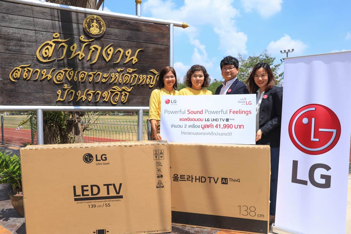 เพราะเสียงเป็นสื่อที่สำคัญในการดำรงชีวิตของผู้พิการทางสายตา บริษัท แอลจี อีเลคทรอนิคส์ (ประเทศไทย) จำกัด จึงตระหนักถึงคุณค่าของการเปิดโลกแห่งการเรียนรู้และแบ่งปันความสุขผ่านเสียงให้แก่ผู้พิการทางสายตา ด้วยการมอบลำโพง LG XBOOM Go PK3 รวม 170 เครื่อง ให้แก่มูลนิธิช่วยคนตาบอดแห่งประเทศไทย ในพระบรมราชินูปถัมภ์ และสมาคมคนตาบอดแห่งประเทศไทย เพื่อพัฒนาทักษะในการเรียนรู้และยกระดับความบันเทิงให้แก่ผู้พิการทางสายตาผ่านการรับฟังเสียงที่เปี่ยมคุณภาพ พร้อมมอบทีวี LG UHD TV ขนาด 55 นิ้ว จำนวน 2 เครื่อง เพื่อเป็นสื่อทางการศึกษาและเสริมสร้างความบันเทิงให้แก่สถานสงเคราะห์เด็กหญิงบ้านราชวิถี รวมมูลค่าทั้งสิ้นกว่า 700,000 บาท