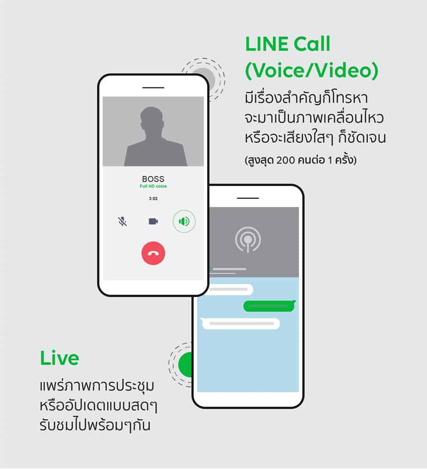 เราสามารถใช้เพื่อประชุมเรื่องสำคัญให้ทุกคนรับรู้พร้อมกันทั้งเสียงและวิดีโอ โดยส่งได้สูงสุดครั้งละ 200 คนเลยทีเดียว แถมยังสามารถทำ LIVE สด ช่วยให้การนำเสนองานผ่าน Group VDO call ง่ายขึ้น โดยทุกคนในกรุ๊ปสามารถคอมเมนต์ แสดงความคิดเห็น ระหว่างที่มีสมาชิกในกลุ่ม LIVE อยู่ได้