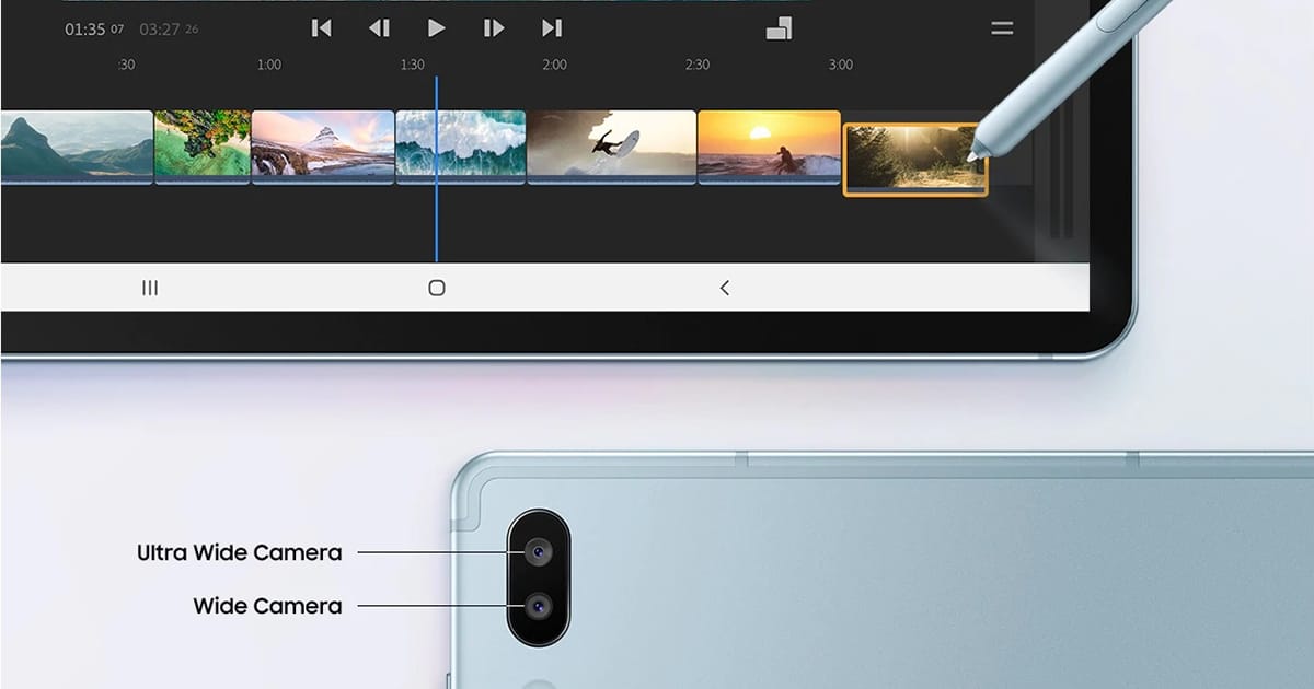 นอกจากนี้ กาแลคซี่ แท็บ เอส 6 Wifi ยังมาพร้อมกล้องถ่ายภาพเลนส์คู่ที่มีความละเอียดถึง 13MP และ 5MP พร้อมโหมด Ultra Wide และ AI อัจฉริยะ สามารถถ่ายภาพออกมาได้ราวกับมืออาชีพ นอกจากนี้ยังมีโปรแกรม Adobe Premiere Rush สำหรับตัดต่อวิดีโอคุณภาพสูงได้อย่างง่ายดายบนแท็บเล็ตเครื่องเดียว