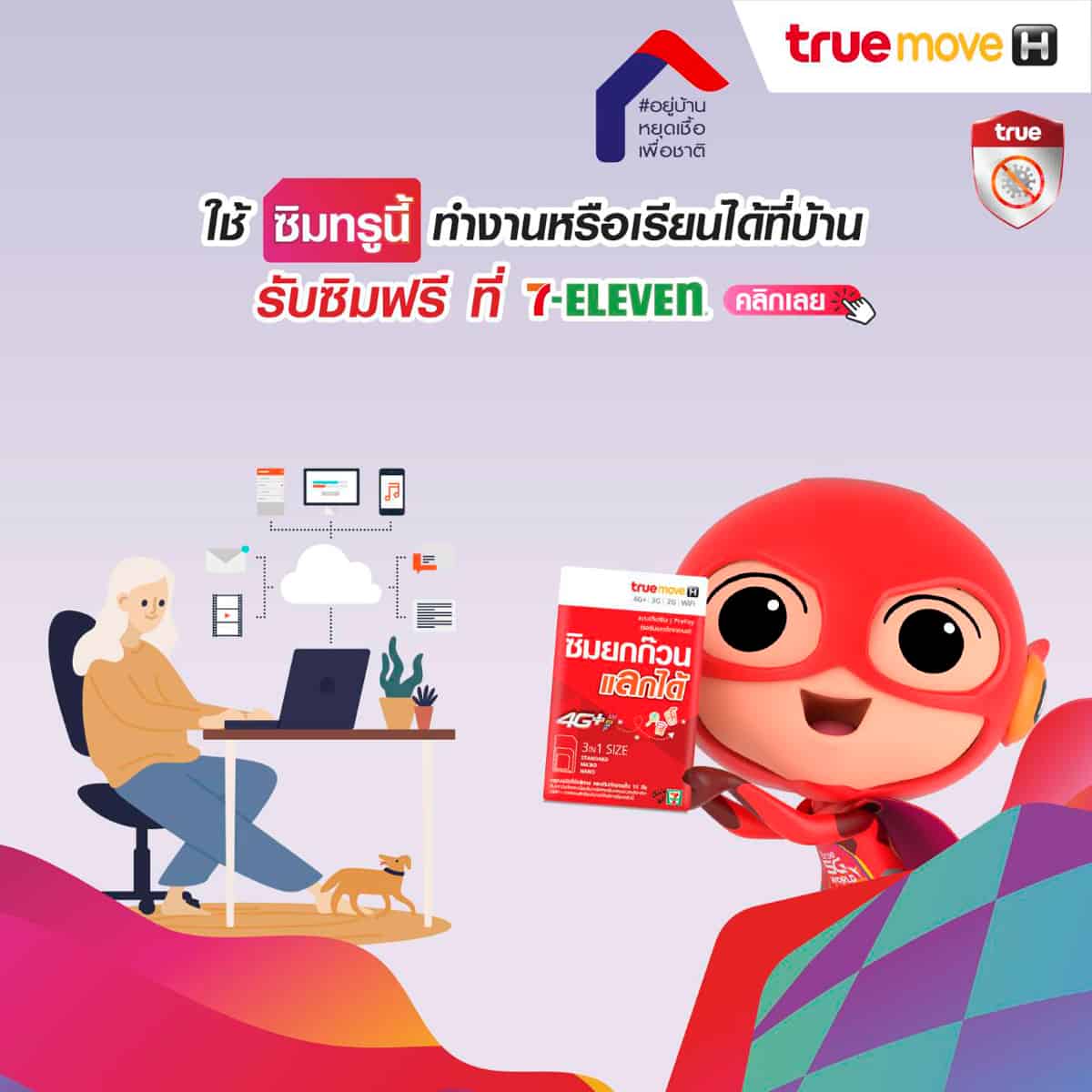 ช่วงนี้ใครๆ ก็ Work from Home หรือ E learning ทีม อยู่บ้าน หยุดเชื้อ เพื่อชาติ รับซิมทรู ใช้ทำงาน หรือเรียน ฟรี ที่ 7-Eleven พร้อมรับสิทธิพิเศษฟรีมากมาย