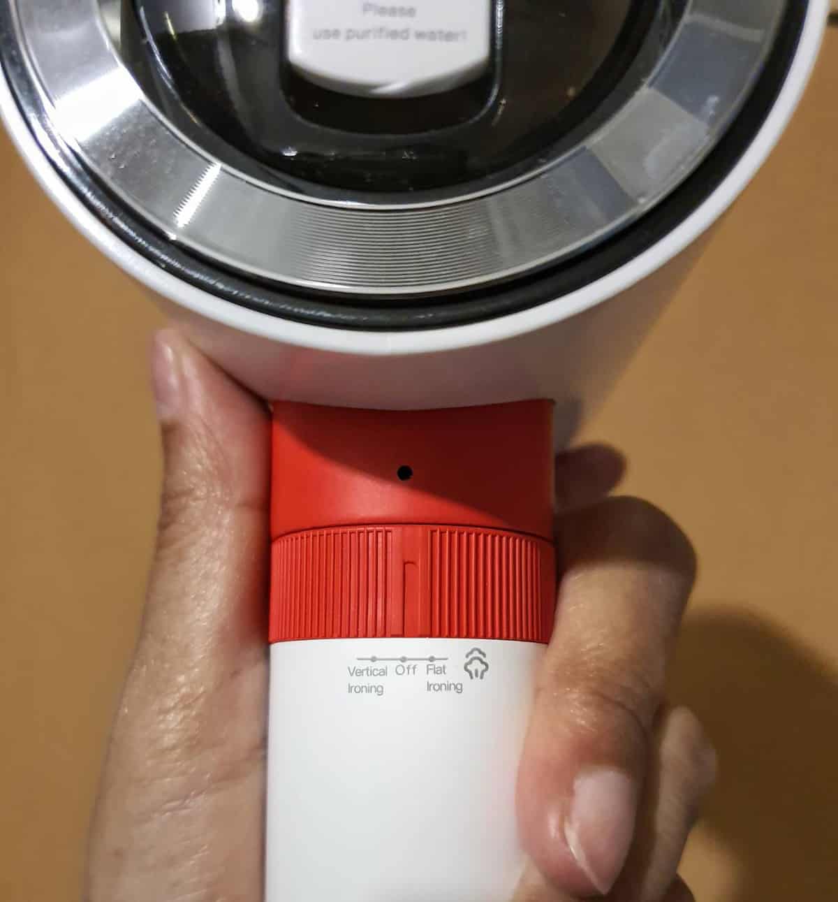 จากนั้นเลือกฟังก์ชั่นการใช้งานได้เลย โดยสวิทช์จะอยู่ที่ด้ามจับ จะมี 2 ฟังก์ชั่นให้เลือกด้วยกันคือ Vertical Ironing การรีดผ้าแบบแนวตั้ง และ Flat Ironing การรีดผ้าเรียบแบบรีดกับโต๊ะ