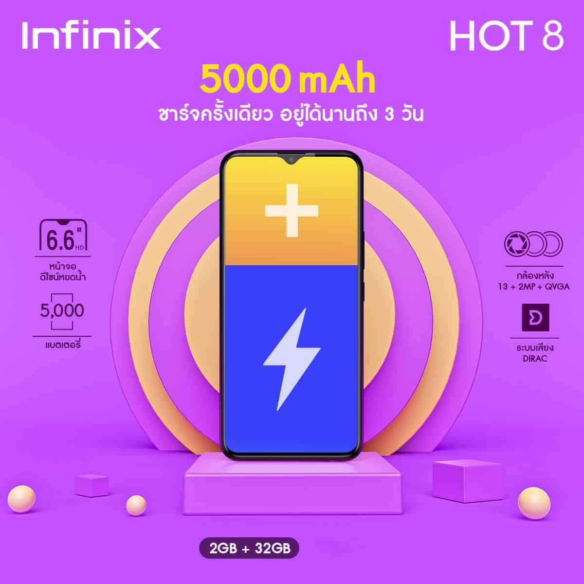 Infinix HOT 8 แบตใหญ่ 5,000 mAh กล้อง 3 เลนส์ ซ์้อได้ที่ ลิงค์นี้