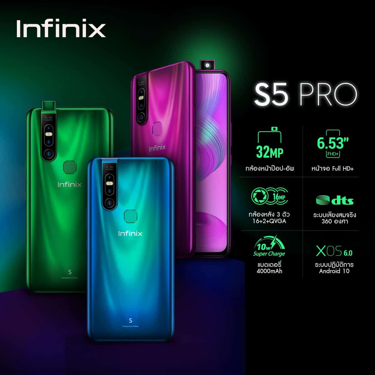Infinix S5 Pro ราคา 4,990 บาท มีให้เลือก 3 สี Violet, Sea Blue และ Forrest Green