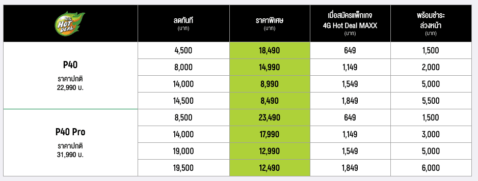 ดูรายละเอียดเพิ่มเติมได้ที่ https://www.ais.co.th/huaweip40/