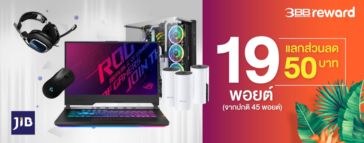 J.I.B Online: ลูกค้า 3BB ใช้เพียง 19 พอยต์ (จากปกติ 45 พอยต์) รับส่วนลดมูลค่า 50 บาท เมื่อซื้อสินค้า 500 บาทขึ้นไป ที่ J.I.B Online เลือกช้อปสินค้าไอที ราคาสุดพิเศษ ได้ถูกใจแบบไม่ต้องออกจากบ้าน ไม่ว่าจะเป็น คอมพิวเตอร์ PC โน๊ตบุ๊ค ซอร์ฟแวร์ ฯลฯ