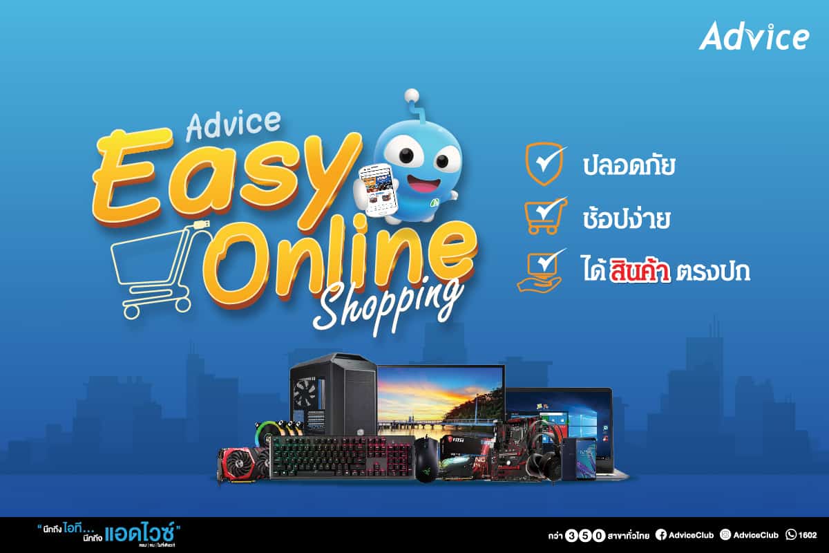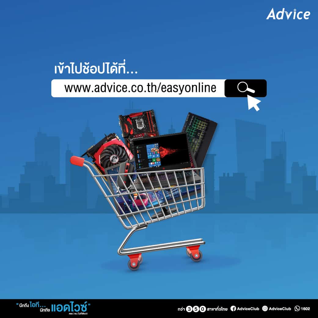 ล่าสุดแอดไวซ์ส่งบริการพิเศษสำหรับลูกค้าที่ต้องการซื้อสินค้าไอทีที่สะดวกและปลอดภัย ในช่วงสถานการณ์นี้ด้วย Advice Easy Online Shopping ปลอดภัย ช้อปง่าย ได้สินค้าตรงปก โดยลูกค้าสามารถเลือก ช้อปสินค้าในแต่ละสาขาผ่านช่องทางการแชทคุยกับเจ้าหน้าที่สาขาผ่านแอพพลิเคชั่น Line หรือ Messenger ของเฟซบุ๊ค เพื่อสั่งสินค้า โดยสามารถขอดูรูปสินค้าหรือวีดีโอคอลในการเลือกซื้อสินค้าก่อนตัดสินใจซื้อเพื่อแก้โจทย์ สำหรับลูกค้าที่ไม่กล้าช้อปออนไลน์ เนื่องจากกลัวสินค้าไม่ตรงปกหรือไม่เป็นไปตามที่คาดหวัง
