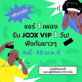 ที่สำคัญตอนนี้ JOOX ใจดี แค่แชร์ 1 เพลงรับ JOOX VIP 1 วัน ให้คุณฟังเพลงได้อย่างจุใจ จนถึง 30 เมษายนนี้แชร์เลย แค่คลิก https://bit.ly/3dBfqWB