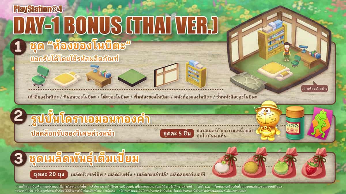 Bandai Namco ได้ประกาศวันวางจำหน่าย DORAEMON STORY OF SEASONS บนเครื่อง PlayStation 4 (PS4) ในวันที่ 30 กรกฎาคม 2563 นี้ โดยเกมจะมีโบนัสแถมให้ใน Day 1 ด้วย และความพิเศษในเวอร์ชันนี้ จะมีเพิ่ม ซับไตเติลภาษาไทยให้อีกด้วย