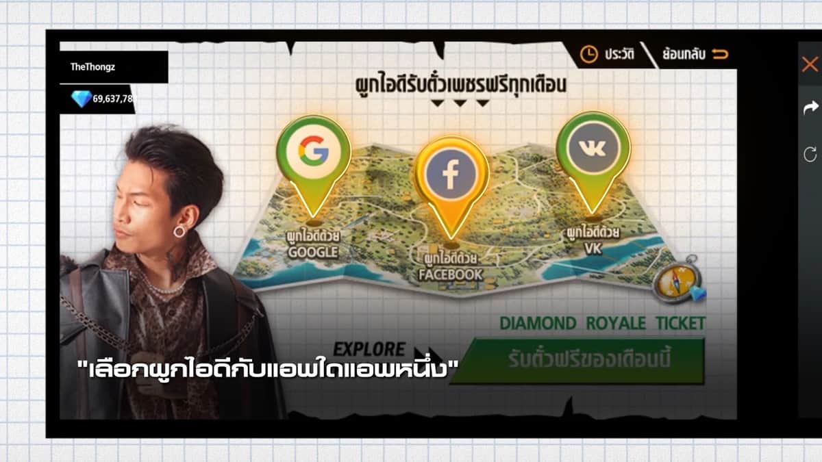 เมื่อเล่น Free Fire แล้วเพื่อนๆอย่าลืมผูกไอดี กับ Google / Facebook หรือ VK ไว้ล่ะเพื่อความปลอดภัยของ “ไอดี” ผู้เล่น แถม! ได้รับไอเทมเป็นคูปองไดมอนด์รอยัล [ทุกเดือน เดือนละ1ใบ] (1 ใบ 60 เพชร เป็นเงิน 21 บาท) เรียกว่าได้ทั้งความปลอดภัยของไอดี และยังได้ไอเทมด้วย รออะไรอยู่รีบไปผูกไอดี Free Fire เร็วว