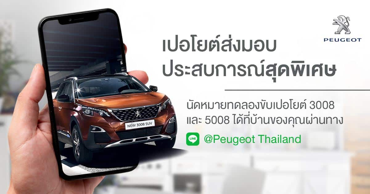 LINE จับมือ Peugeot เปิดธุรกิจยานยนต์ไทยบน LINE OA เปิดบริการซื้อขายรถ ทำการนัดหมายนำรถทดลองขับถึงบ้านพร้อมปิดการขายผ่าน Chat Commerce