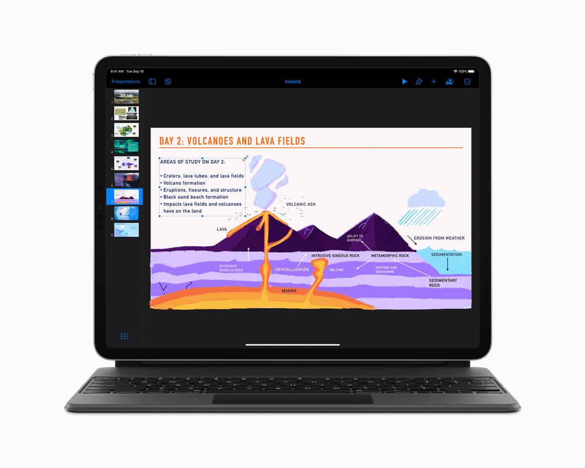 Magic Keyboard ใช้ประโยชน์เต็มที่จากประสบการณ์การใช้งานที่ไม่เหมือนใครของ iPadOS โดยในขณะที่ผู้ใช้เคลื่อนนิ้วไปบนแทร็คแพดที่มีอยู่ในตัว เคอร์เซอร์จะปรับเปลี่ยนอย่างสวยงามเพื่อเน้นองค์ประกอบในอินเทอร์เฟซผู้ใช้ให้โดดเด่น ส่วนคำสั่งนิ้วแบบ Multi-Touch บนแทร็คแพดก็ทำให้การใช้งานส่วนต่างๆ ของทั้งระบบนั้นทั้งง่ายและรวดเร็วโดยที่ผู้ใช้ไม่จำเป็นต้องยกมือขึ้นมาเลย และการรองรับแทร็คแพดใน iPadOS ยังออกแบบมาให้ทำงานกับแอพที่ลูกค้าใช้ทุกวันได้อย่างดีเยี่ยม ไม่ว่าจะเขียนหรือแก้ไขข้อความใน Pages และแอพโน้ตก็ทำได้สบายๆ ทั้งยังทำงานกับวัตถุหลายชิ้นใน Keynote ได้ง่ายยิ่งกว่าที่เคย และเมื่อมีความแม่นยำมากขึ้นอีกระดับแล้ว การสร้างหรือจัดระเบียบสเปรดชีทใหญ่ๆ ใน Numbers ก็ไม่ใช่เรื่องยากอีกต่อไป ดูเพิ่มเติมเกี่ยวกับ iPadOS ที่ apple.com/th/ipados