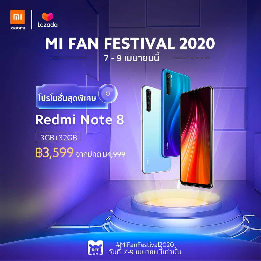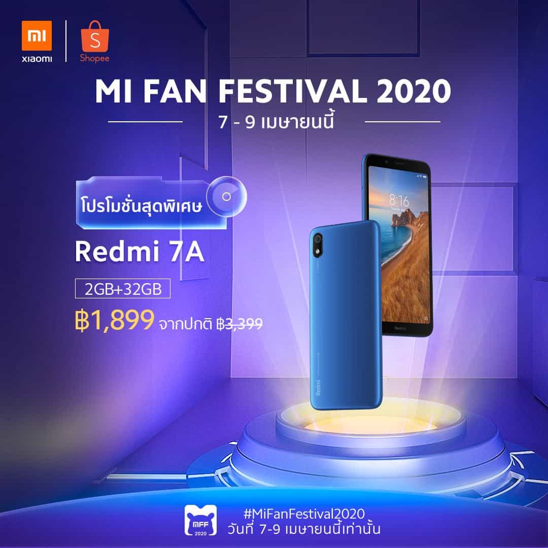 เสียวหมี่ เปิดเทศกาล Mi Fan Festival 2020 (MFF 2020) 7-9 เมษายน 2563 มหกรรม ลดราคา พิเศษผ่านช่องทางออนไลน์ Lazada Shopee และ JD Central พิเศษ สุดกับ Redmi Note 9S รุ่น MFF-limited edition มีเพียง 2020 เครื่องในโลก พร้อมขายในไทย ราคา 7,999 บาท