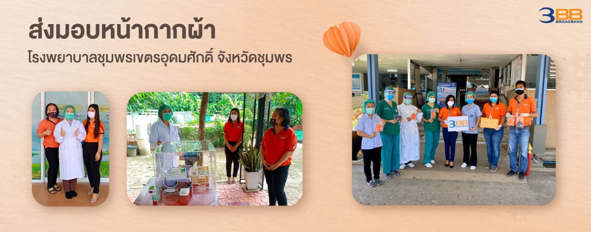 ในขณะเดียวกัน ที่จังหวัดชุมพร 3BB ได้มอบหน้ากากอนามัยให้กับโรงพยาบาลชุมพรเขตรอุดมศักดิ์