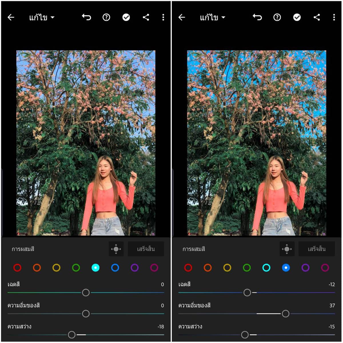 จากนั้นเรามาต่อกันที่ การมิกซ์สี หรือการผสมสีตามเฉดสีต่างๆ ว่าเราต้องการให้รูปเราเน้นสีไหนจะไปในทิศทางใด ส่วนนี้สำคัญสำหรับภาพ สามารถปรับตามตัวอย่างได้เลย โดยจะมีทั้งหมด 8 เฉดด้วยกัน