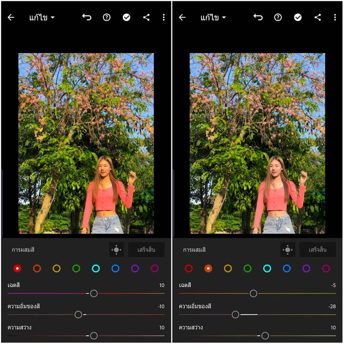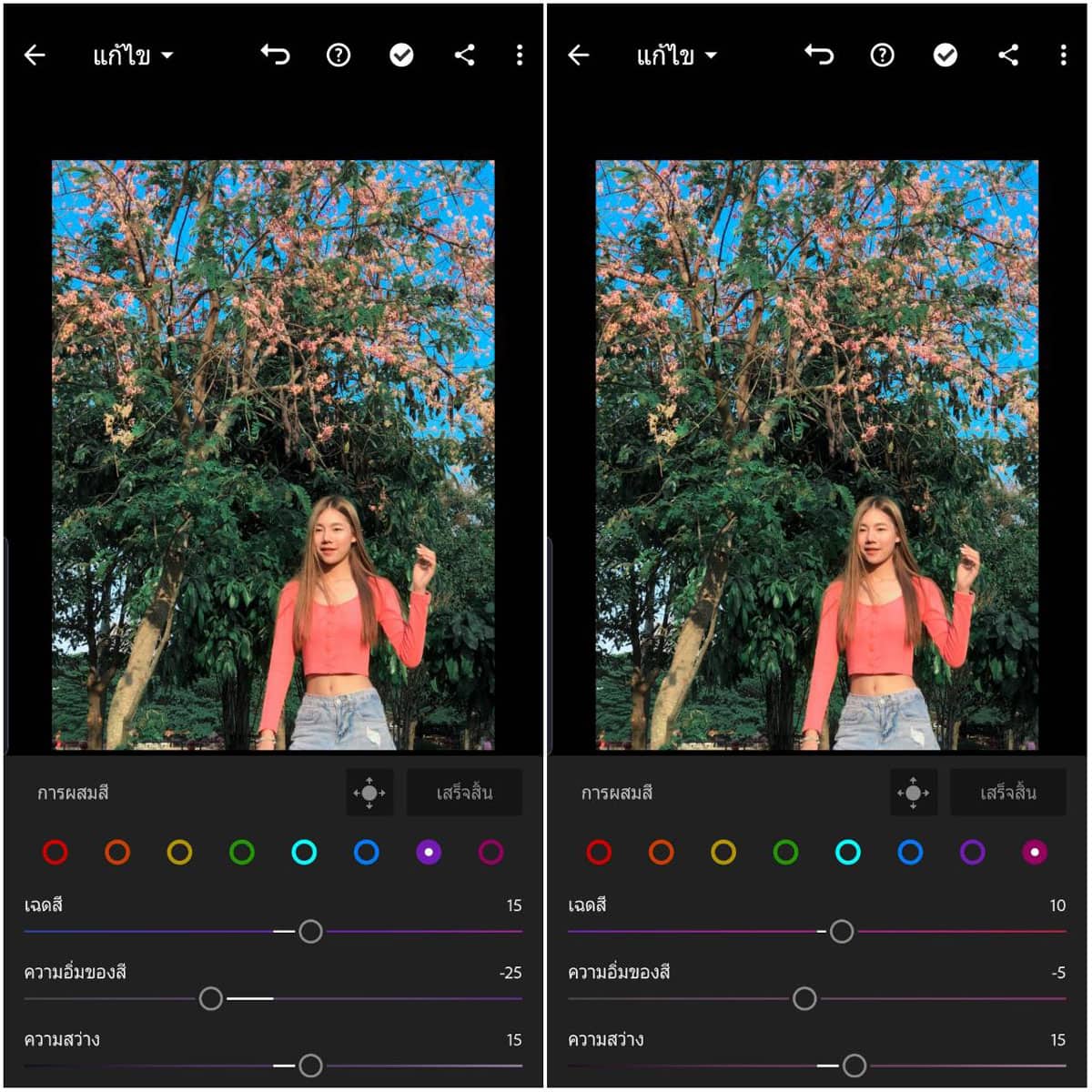 จากนั้นเรามาต่อกันที่ การมิกซ์สี หรือการผสมสีตามเฉดสีต่างๆ ว่าเราต้องการให้รูปเราเน้นสีไหนจะไปในทิศทางใด ส่วนนี้สำคัญสำหรับภาพ สามารถปรับตามตัวอย่างได้เลย โดยจะมีทั้งหมด 8 เฉดด้วยกัน