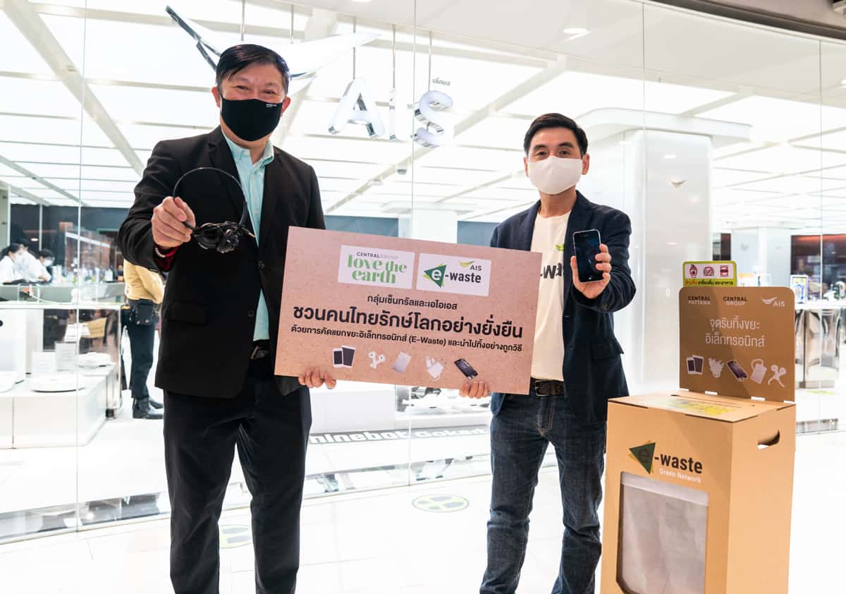 AIS จัดตั้งแคมเปญ “คนไทยไร้ E-Waste” รับทิ้งขยะอิเล็กทรอนิกส์ และนำไปกำจัดอย่างถูกวิธี กับกลุ่มเซ็นทรัล ขยายจุดรับทิ้งในศูนย์การค้าเครือเซ็นทรัล 34 แห่ง