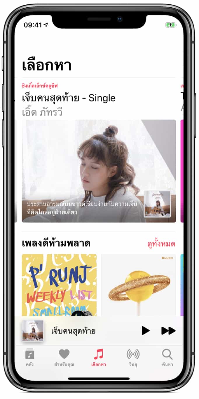 Apple Music คือบริการสตรีมเพลงแบบไม่มีโฆษณาที่ช่วยให้คุณฟังเพลงจากคลังเพลงกว่า 60 ล้านเพลงและสามารถสร้างเพลย์ลิสต์ส่วนตัวได้ในฐานะผู้สมัครใช้บริการคุณจะสามารถฟังเพลงได้ทุกเมื่อทั้งออนไลน์และออฟไลน์ได้รับคำแนะนำที่ปรับให้เข้ากับตัวคุณดูเพลงที่เพื่อนๆของคุณกำลังฟังดูเนื้อหาวิดีโอพิเศษ และอื่นๆใหม่ล่าสุดวันนี้คุณสามารถสมัครสมาชิกผ่านทาง music.apple.com ได้แล้วทดลองใช้บริการ Apple Music ได้ฟรี 3 เดือนดูข้อมูลเพิ่มเติมได้ที่ http://www.apple.com/th/music/