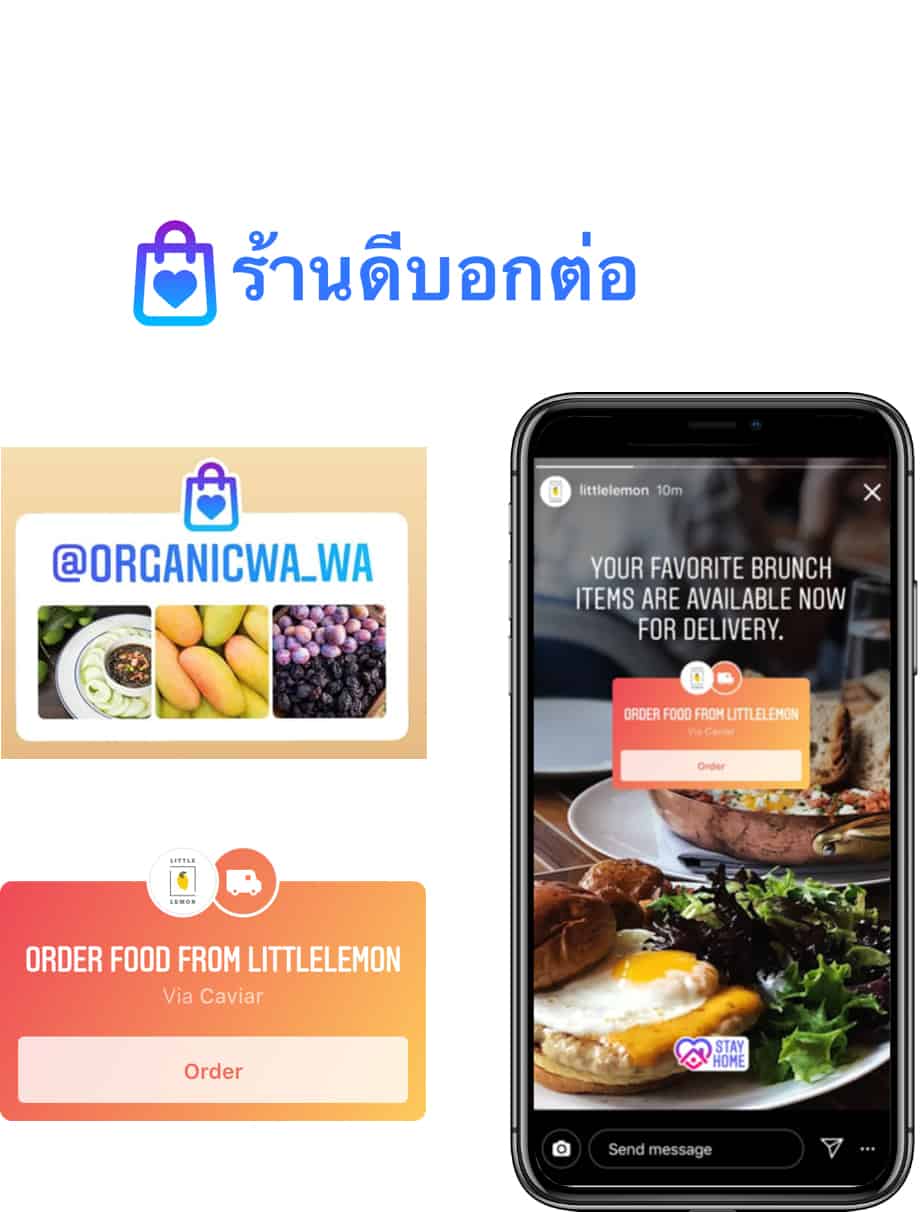กิจกรรมดังกล่าวยังรวมถึงการเปิดตัวสติ๊กเกอร์สนับสนุนธุรกิจขนาดเล็ก “ร้านดีบอกต่อ”บน Instagram โดยเมื่อผู้คนใช้สติ๊กเกอร์สนับสนุนธุรกิจขนาดเล็กบน Instagram เนื้อหานั้นจะถูกนำไปรวมอยู่ใน Instagram Stories เพื่อแสดงให้ผู้ติดตามเห็น สำหรับบน Facebook ผู้บริโภคยังสามารถใช้แฮชแท็ก #ร้านดีบอกต่อบน Facebook เพื่อแนะนำธุรกิจหรือร้านค้าและบริการที่พวกเขาชื่นชอบได้ การเปิดตัวดังกล่าวได้มาเสริมฟีเจอร์สั่งซื้ออาหารบน Instagram ที่เปิดตัวไปเมื่อเร็วๆ นี้ โดยธุรกิจสามารถแชร์สติ๊กเกอร์สั่งซื้ออาหารผ่าน Instagram Stories หรือเพิ่มปุ่มสั่งซื้ออาหารบนหน้าโปรไฟล์ของพวกเขาได้แล้วในวันนี้