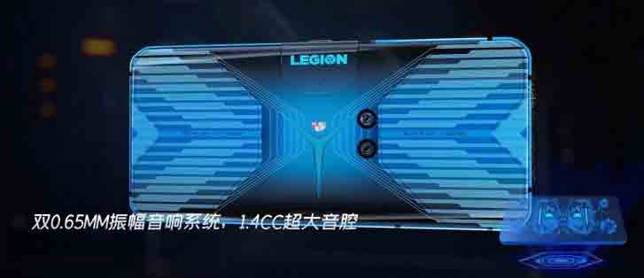 จากรูปจะเห็นว่าสมาร์โฟนรุ่นนี้ ออกแบบมาให้ถือแนวนอน จึงไม่แปลกที่กล้องหน้าจะถูกแอบไว้ข้างเครื่องแบบนั้น ตรงบริเวณที่กล้องเซลฟี่เด้งขึ้นมาจะมีโลโก้ Legion อยู่ หากดูที่หลังเครื่องจะเห็นว่ามีแฟลชแบบ Dual-LED อยู่ตรงกลางหลังเครื่องเหนือสัญลักษณ์ Legion Star