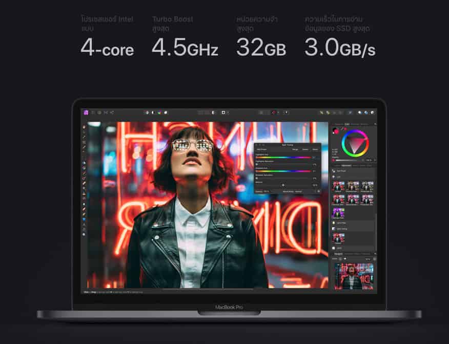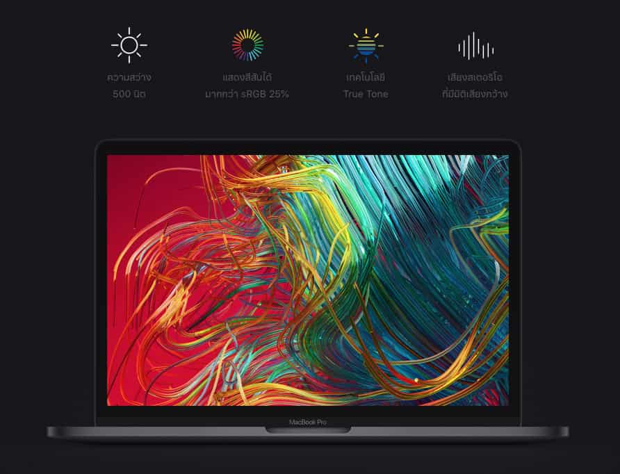 - Intel Core-I5 8th Gen Quad-core 2.0GHz / RAM 16GB LPDDR4X 3733MHz / SSD 512GB / Thunderbolt 3 x4 พอร์ต ราคา 59,900 บาท