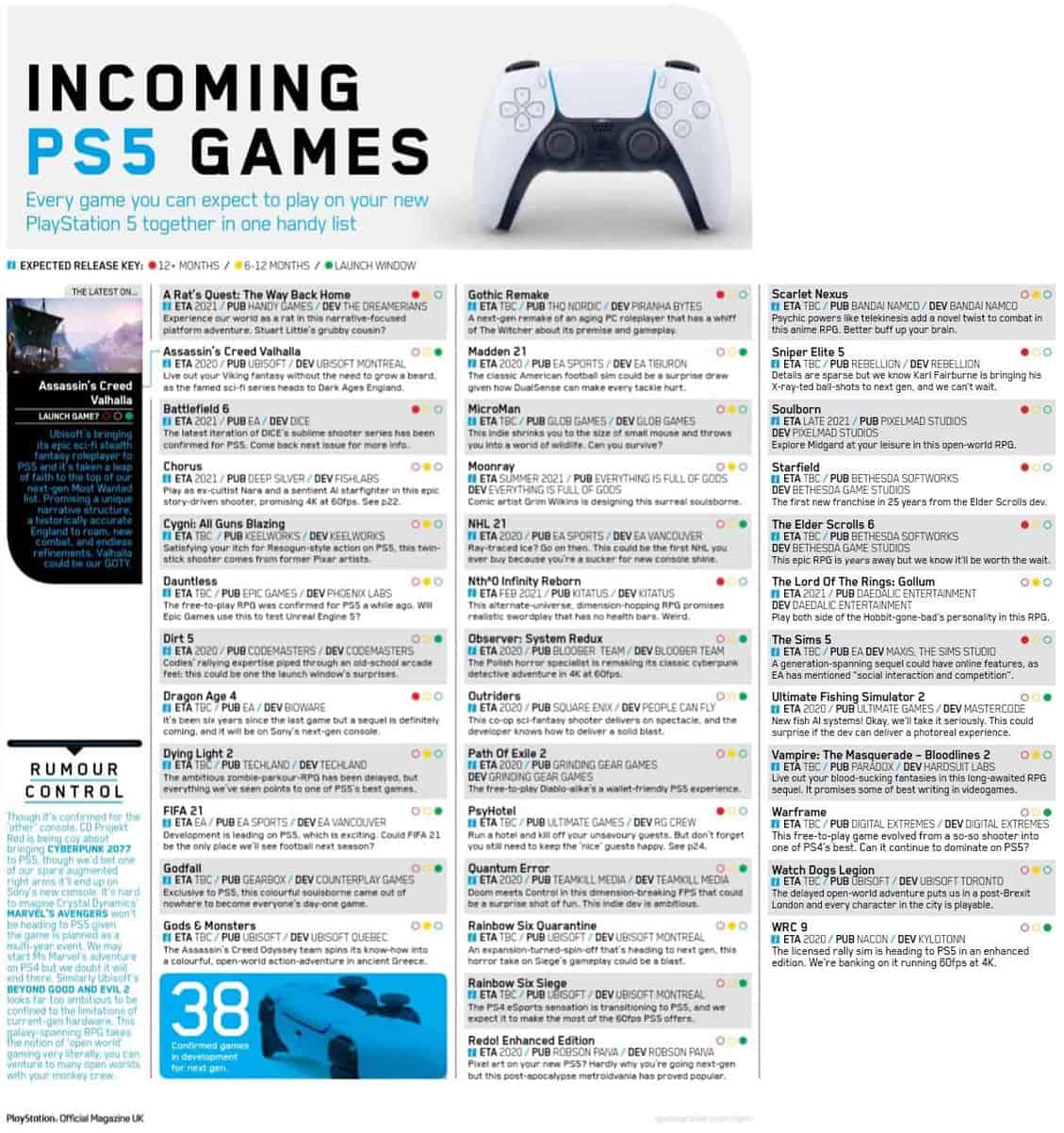 จากข้อมูล มีระบุด้วยว่า ตัวเกมจะเปิดตัวเมื่อใด ซึ่งมีทั้งเปิดตัวในปี 2020 นี้ (คาดเป็นช่วงเดียวกับที่เครื่อง PS5 วางจำหน่าย) และหลายเกมจะเป็นช่วงปีหน้า 2021 และอีกหลายเกมที่ยังไม่กำหนดว่าจะวางจำหน่ายเมื่อใด