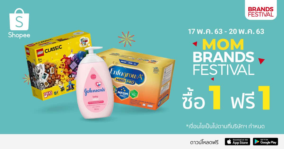 - Shopee Mom Brands Festival พบกับดีลสินค้าแม่และเด็กคุ้มจุใจจากแบรนด์ชั้นนำ อาทิ Babylove, Huggies, Nestle, Foremost, Johnsons & Johnsons และอื่นๆ ระหว่างวันที่ 17-20 พฤษภาคม 2563 และคุ้มค่ายิ่งกว่ากับโปรโมชั่นซื้อ 1 แถม 1 อีกด้วย