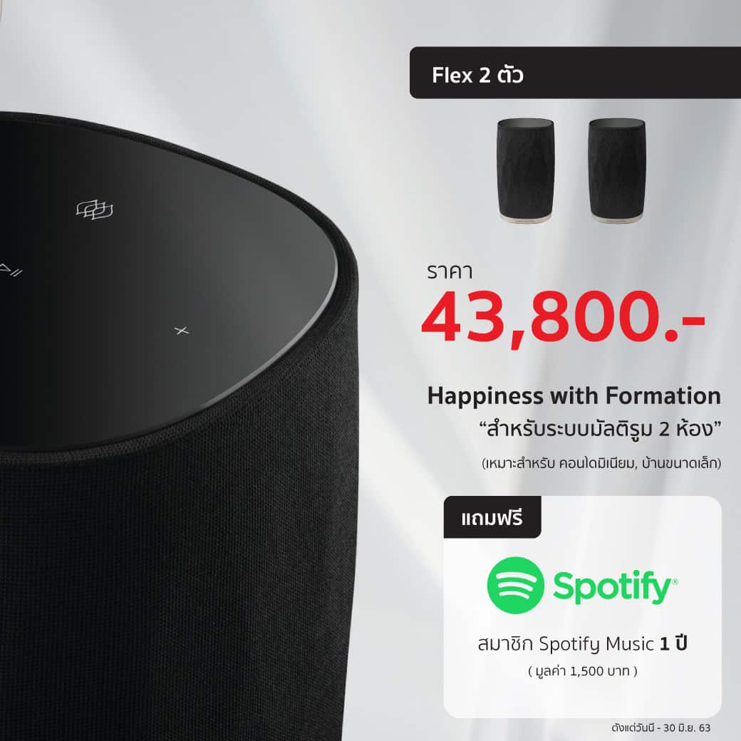 2. ซื้อสินค้าชุดเครื่องเสียงไร้สาย Series Formation รุ่น Flex 2 ตัว ในราคา 43,800 บาท รับฟรีสมาชิก Spotify ฟรี 1 ปี มูลค่า 1,500 บาท