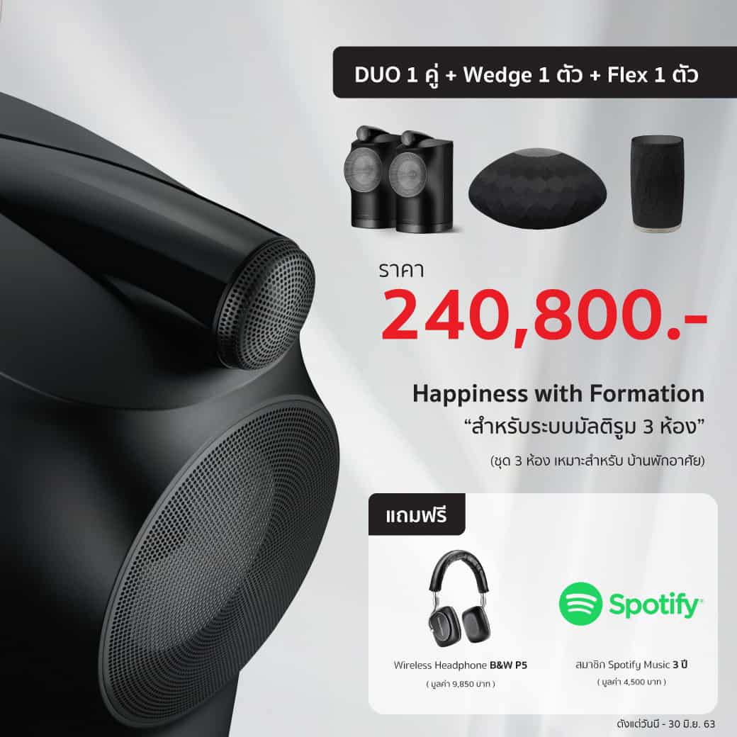 5. ซื้อสินค้าชุดเครื่องเสียงไร้สาย Series Formation รุ่น Duo 1 คู่, Wedge 1 ตัว และ Flex 1 ตัว มูลค่า 240,800 บาท รับฟรี หูฟังไร้สายแบรนด์ Bowers & Wilkins รุ่น P5 มูลค่า 9,850 บาท และสมาชิก Spotify ฟรี 3 ปี มูลค่า 4,500 บาท
