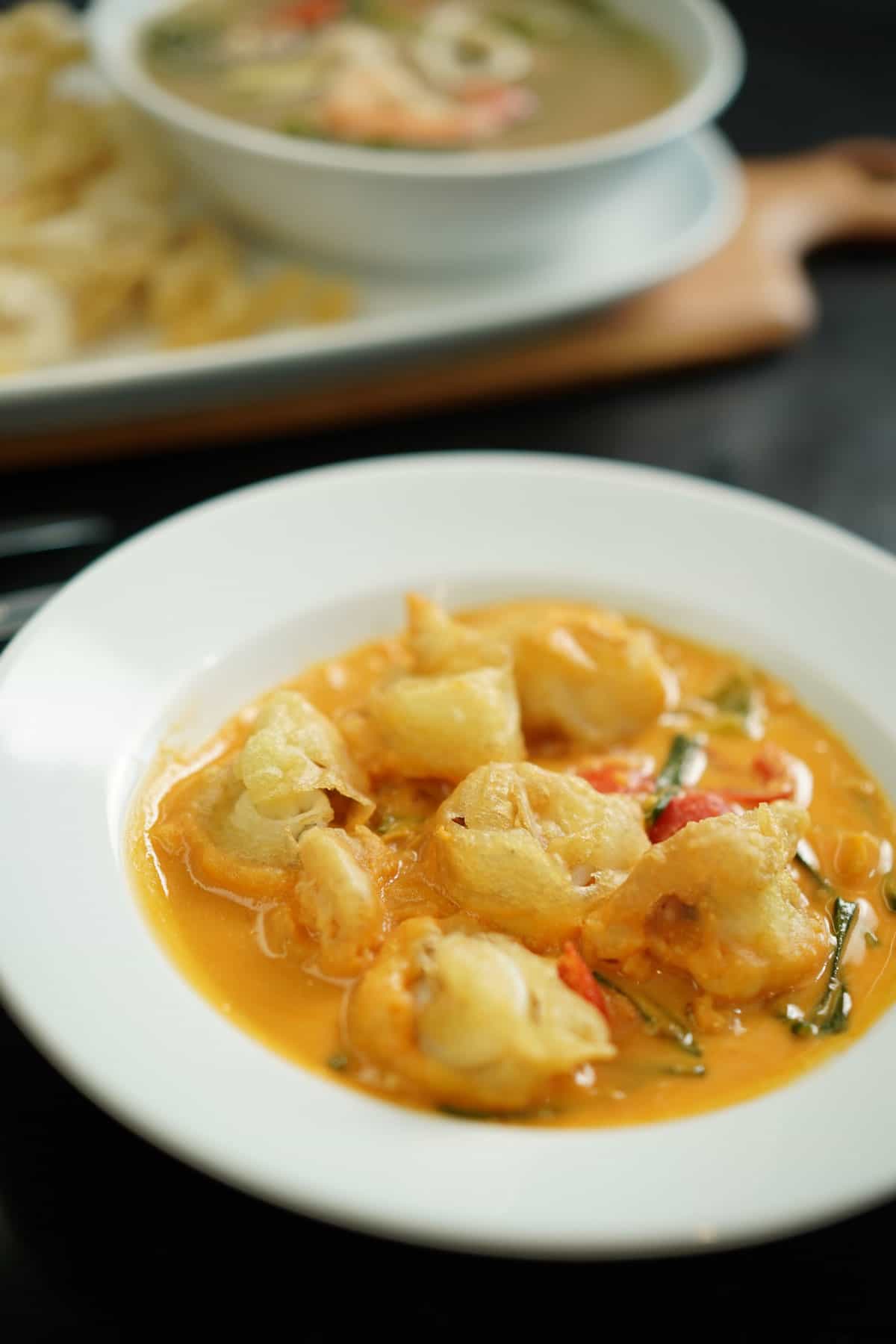 ไปต่อกันด้วยเมนูเด็ดที่กินกี่ครั้งก็ฟินเหมือนอยู่ในทะเลกับเมนู ‘ปลาหมึกผัดไข่เค็ม’ อันเลื่องชื่อ ที่มาพร้อมกับปลาหมึกสดตัวโต คลุกเคล้าอยู่ในซอสไข่เค็มรสกลมกล่อมที่เข้ากันแบบลงตัว แต่ถ้าอยากเพิ่มความอร่อยให้เมนูนี้ เฌอขอแนะนำให้นำปลาหมึกมาชุบแป้งทอดกรอบจนมีสีเหลืองทองก่อน แล้วค่อยนำไปคลุกกับซอสไข่เค็ม เป็นเมนูจานเด็ดที่เฌอปรางขอยกนิ้วให้เลย เคี้ยวไปแล้วกรอบนอกนุ่มใน อร่อยถูกใจเป็นที่สุด ใครไม่ลองทานเมนูนี้จะต้องเสียใจ เฌอปรางเตือนแล้วนะ!