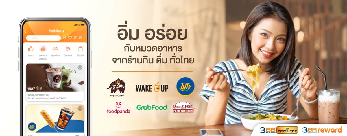 3BB Member จัดสิทธิพิเศษที่ให้ทั้งส่วนลด และการแลกพอยต์จากร้านอาหารและเครื่องดื่มกว่า 270 ร้านทั่วไทยทั้งจากร้านค้าในท้องถิ่นและร้านค้าชั้นนำ เช่น กาแฟพันธุ์ไทย ที่ให้ลูกค้าใช้ 3BB พอยต์แลกรับเครื่องดื่มร้อน-เย็น-ปั่นฟรี หรือซื้อเครื่องดื่ม 1 แก้ว รับฟรีอีก 1 แก้ว ที่ WAKE UP COFFEE ใช้ 3BB พอยต์ แลกรับไอศกรีมฟรีจากร้าน อืมม มิลค์ หรือร้านจิฟฟี่ ที่ให้นำ 3BB พอยต์แลกรับฟรีคอร์นดอกพร้อมน้ำอัดลม ขนาด 16 ออนซ์ และร้านอื่นๆอีกมากมาย