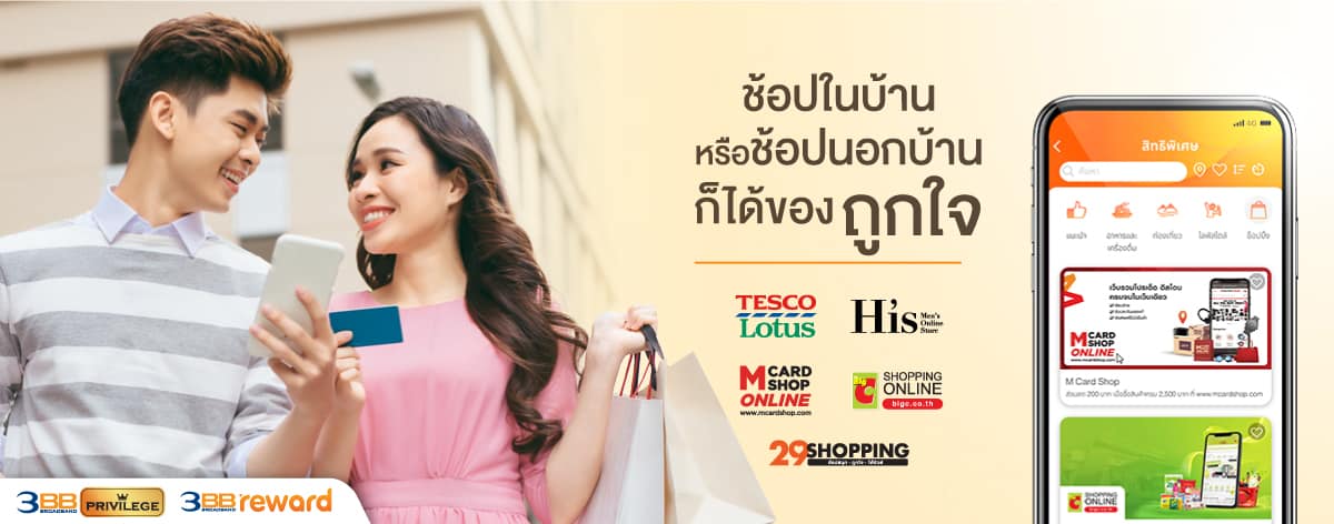 3BB ยังได้มอบสิทธิ์แลกรับคูปองส่วนลดสำหรับซื้อสินค้าที่เทสโก้โลตัสทุกสาขา หรือจะเลือกซื้อสินค้าผ่านออนไลน์ก็มีให้เลือกช็อปตามความต้องการจากหลายแหล่ง เช่น M Card Shop ในเครือ The Mall, Big C Shopping Online , 29 Shopping , His เว็บไซต์สินค้าออนไลน์สำหรับผู้ชาย เป็นต้น