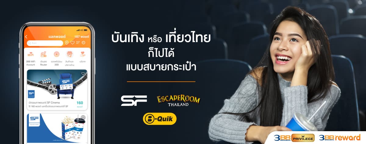 ความสุขพร้อมเสิร์ฟในช่วงคลายล็อกที่ 3BB คัดสรรมาเพื่อทุกไลฟ์สไตล์ของลูกค้าทุกคน กดดูสิทธิพิเศษจากร้านค้าทั่วไทย และเลือกรับสิทธิ์ได้ที่ 3BB Member Application แอปที่จัดให้ครบ จบในที่เดียว รายละเอียดเพิ่มเติม www.3bbprivilege.com หรือสอบถามโทร 1530