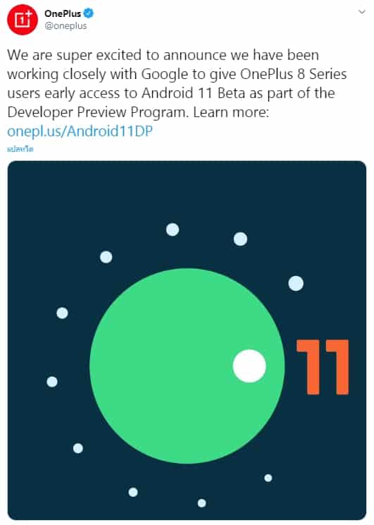 ก่อนหน้านี้ Android 11 Beta เปิดให้ใช้แค่บน Pixel แต่ตอนนี้เปิดใช้ในเครื่องรุ่นอื่นแล้ว ล่าสุด OnePlus ประกาศว่าผู้ใช้ OnePlus 8 Series สามารถทดสอบ Android OS รุ่นนี้ได้แล้ว