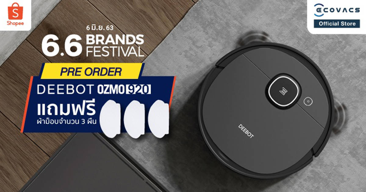 บริษัท เมนทาแกรม จำกัด ผู้นำเข้าและจัดจำหน่ายผลิตภัณฑ์หุ่นยนต์ทำความสะอาดบ้าน ECOVACS ROBOTICS จับมือกับ ช้อปปี้ ในแคมเปญ Shopee 6.6 Brands Festival จัดโปรโมชั่นพิเศษสุดๆ สำหรับหุ่นยนต์ดูดฝุ่น ECOVACS DEEBOT OZMO 920 รุ่นยอดนิยม และรุ่น DEEBOT OZMO 930 ที่มาพร้อมเทคโนโลยีสุดล้ำ การสแกน วิเคราะห์ และสร้างแผนที่บนแอปพลิเคชัน Smart Navi 3.0 พร้อมเทคโนโลยีถังน้ำถูพื้น OZMO Mopping Technology กวาด ดูดฝุ่น และถูพื้นได้ในเครื่องเดียว ในราคาพิเศษ ยังมีรุ่น Mid-Tier ที่มีราคาเข้าถึงได้ ฟังก์ชั่นการทำความสะอาด กับรุ่น DEEBOT OZMO610 ให้เหล่านักช้อปได้ทำความสะอาดด้วยระบบอัตโนมัติที่ง่าย เร็ว ไม่เปลืองแรง