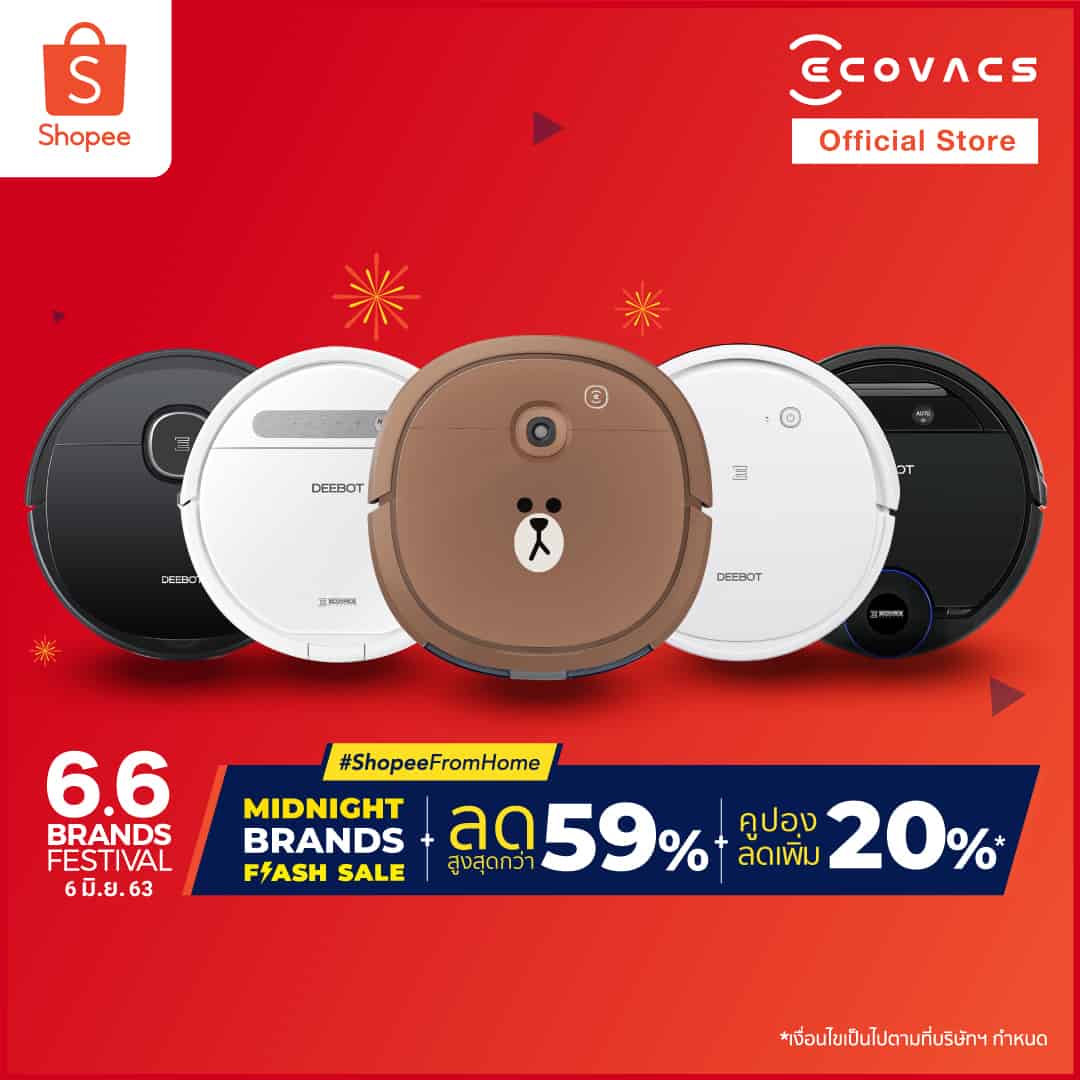 สำหรับผู้ที่ต้องการหุ่นยนต์ทำความสะอาด ECOVACS มาเป็นผู้ช่วยรักษาความสะอาดในบ้าน สามารถเลือกซื้อสินค้าในราคาโปรโมชั่นสุดพิเศษด้วยส่วนลดสูงสุดถึง 59% พร้อมคูปองส่วนลดเพิ่มสูงสุด20% และสิทธิพิเศษอื่นๆ อีกมากมาย ในแคมเปญ Ecovacs x Shopee 6.6 Brands Festival ได้ที่ Ecovacs Official Store บนช้อปปี้ หรือเว็บไซต์ https://bit.ly/ECOVACSxShopee66 ได้ตั้งแต่วันนี้จนถึงวันที่ 6 มิถุนายน 2563 นี้
