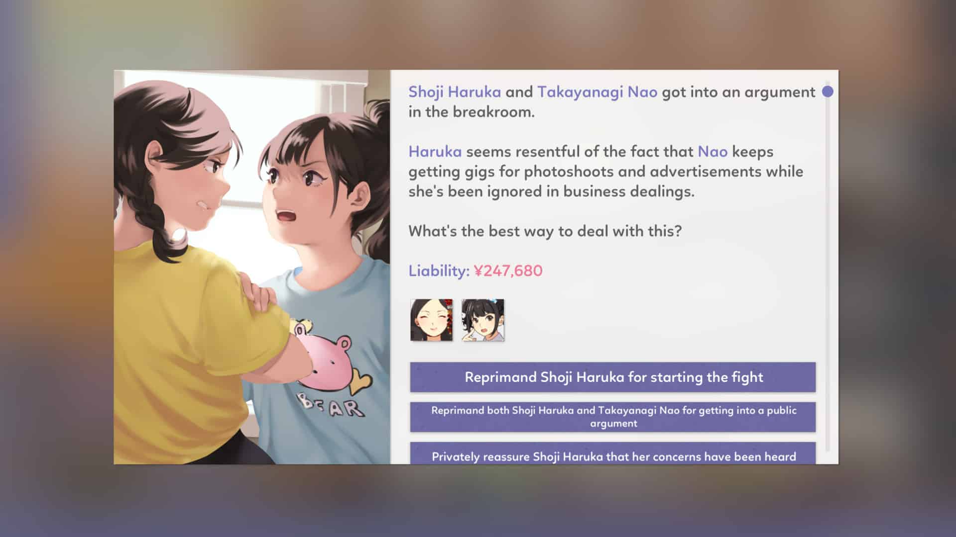 เนื่องจากผู้เล่นต้องรับบทเป็นผู้จัดการวงไอดอล ดังนั้นชีวิตส่วนตัวของสาวๆไอดอลก็ถือเป็นส่วนหนึ่งของธุรกิจ และแน่นอนว่าชีวิตไอดอลย่อมไม่ได้โรยไปด้วยกลีบกุหลาบ ความสำเร็จของสาวๆไอดอล สามารถนำพาความสำเร็จในเชิงพาณิชย์มาให้แก่บริษัท และเช่นกัน ถ้ามีอะไรที่ไม่ดีเกิดขึ้น เช่น การ PR ประชาสัมพันธ์ที่ไม่ดี ก็อาจส่งผลกระทบให้บริษัทเสียหายได้