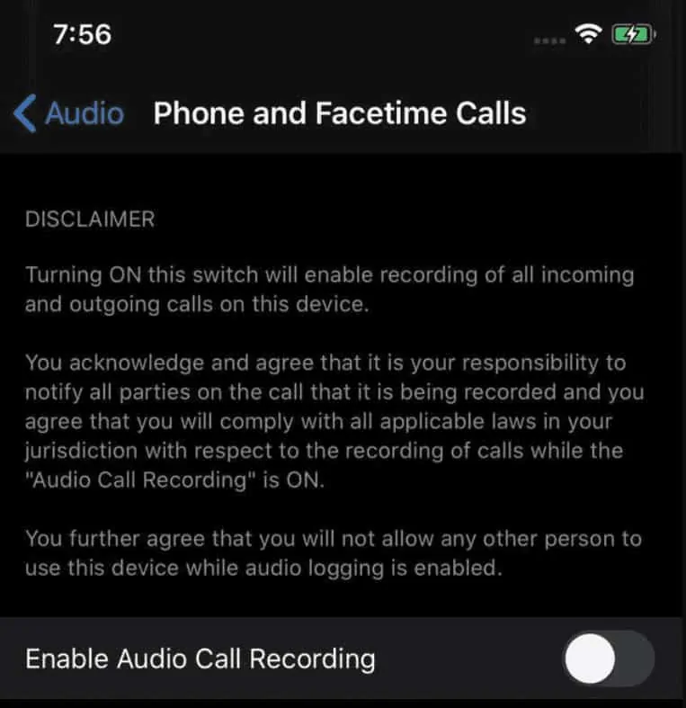 และจากรายงานล่าสุด Apple เองก็ได้อธิบายรายละเอียดของฟังก์ชั่นนี้เอาไว้ว่า ก่อนจะ อัดเสียง บันทึกการสนทนา ไม่ว่าจะเป็นการคุยโทรศัพท์ หรือ FaceTime ผู้ใช้งานต้องได้รับการยินยอมจากคู่สนทนาซะก่อน ถึงจะทำการบันทึกได้ นอกจากนั้นฟังก์ชั่นนี้ยังห้ามไม่ให้แชร์อุปกรณ์นี้ร่วมกับผู้อื่นขณะทำการสนทนา